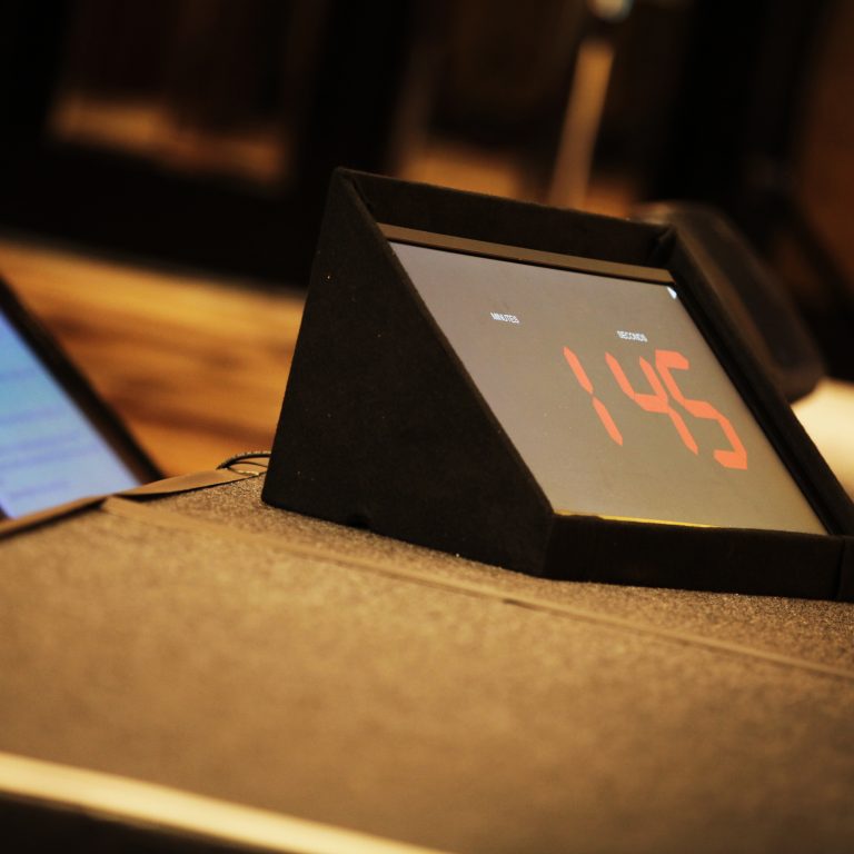 For Audio we ran four 8” speakers around the room as delayed pairs from an industry standard console using wireless microphones. This filled the room with sound at the same time as being visually subtle in deployment within the space.